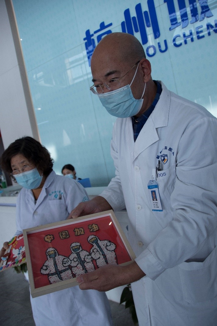 “以前都是我给小朋友送礼物,没想到今天会收到小朋友的礼物,真的很感动。”面对突然的惊喜,内科(神经)的高焕民主任红了眼眶。