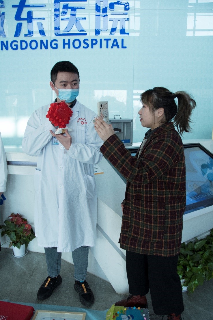 “看到这个穿着防护服的娃娃,就想到去年那些惊心动魄的时光,这会是我宝贵的记忆。”护士小雪开心地说。